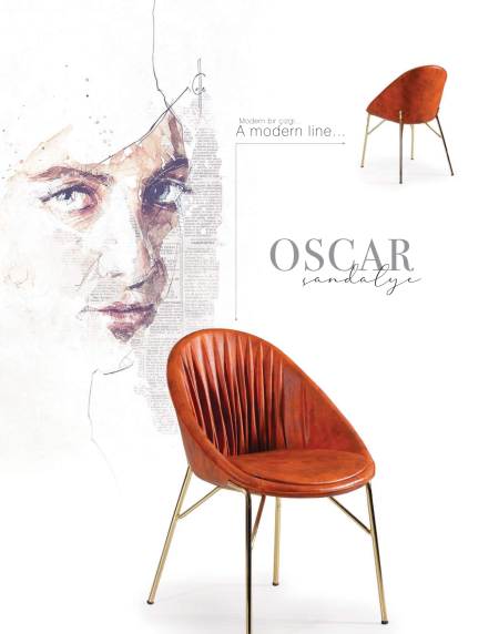 Scaunul Oscar de la Total Slava se remarcă prin designul său modern și elegant, cu o structură metalică subțire și tapiserie din piele de calitate superioară. Liniile fluide și formele rotunjite ale carcasei, împreună cu perna integrată, oferă confort maxim și o senzație plăcută