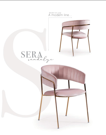 Scaunul Sera de la Total Slava combină eleganța cu confortul, având tapițerie moale în nuanța modernă de roz murdar și o structură metalică aurie, lucioasă. Designul său sofisticat, cu cusături verticale pe bază, îl face potrivit atât pentru interioare moderne, cât și clasice. Confortul și versatilitatea sunt garantate, iar materialele