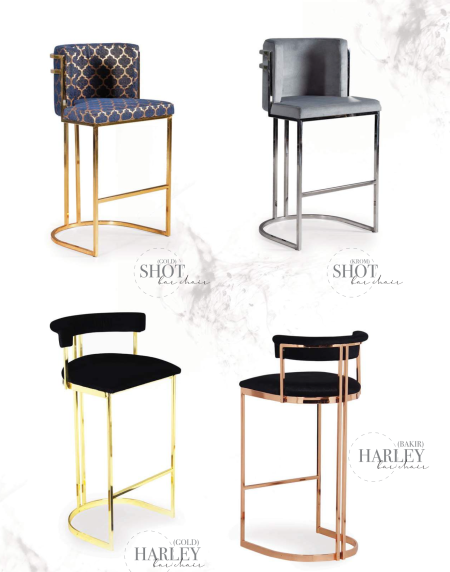 Scaunul Shot de la Total Slava adaugă eleganță oricărui spațiu cu un cadru metalic disponibil în finisaje aurii, crom sau cupru și tapițerie din catifea. Disponibil în culori de negru, gri sau cu model, este perfect pentru baruri și zone de dining. Confortul premium și designul sofisticat îl fac ideal